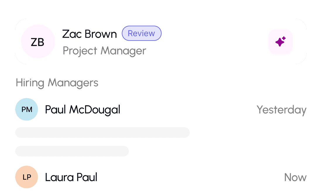 Shared scorecards, private notes, @mentions, and centralized feedback across every pipeline stage. Assign team members to jobs so your panel sees the same information and align on decisions faster.